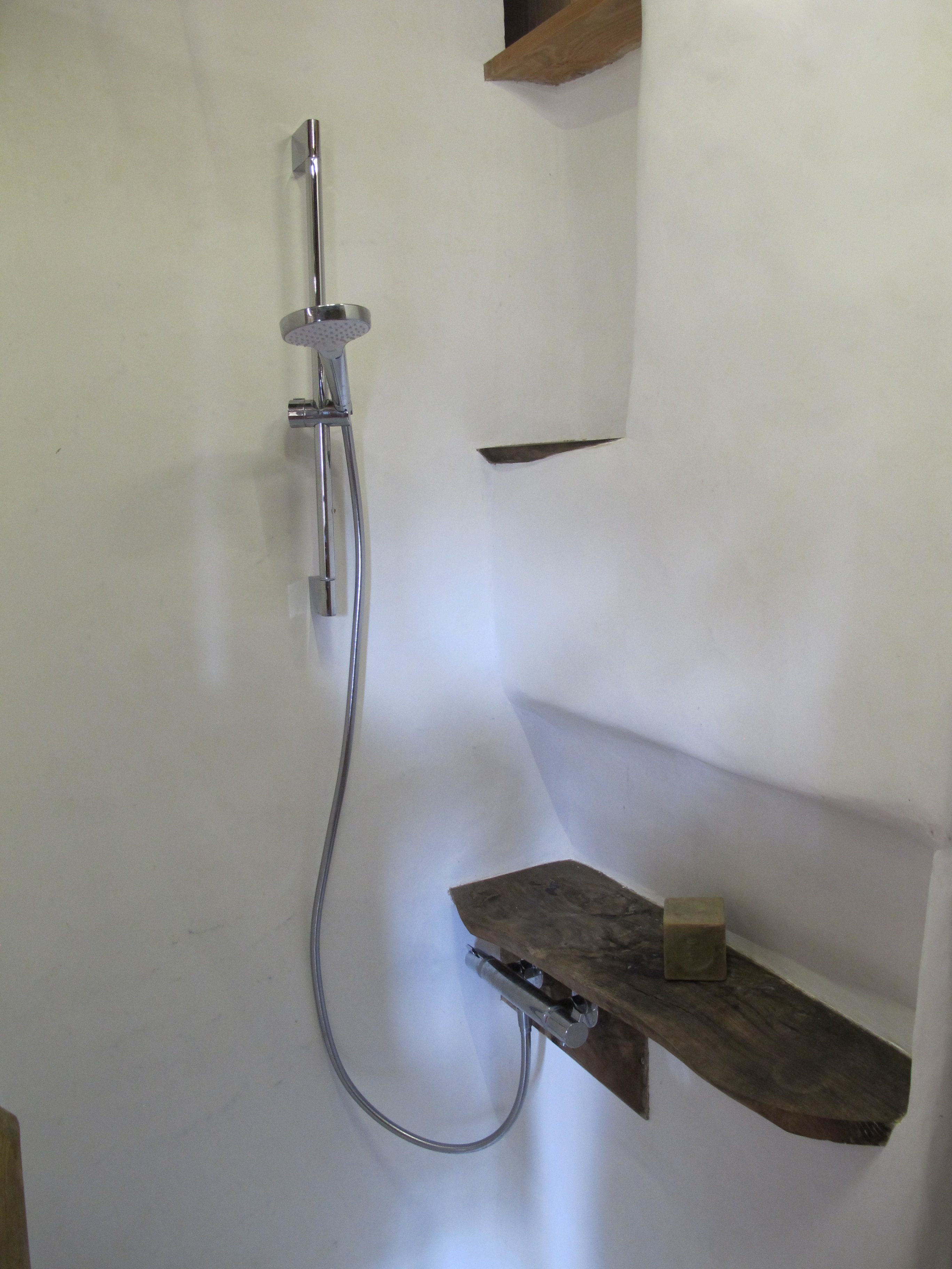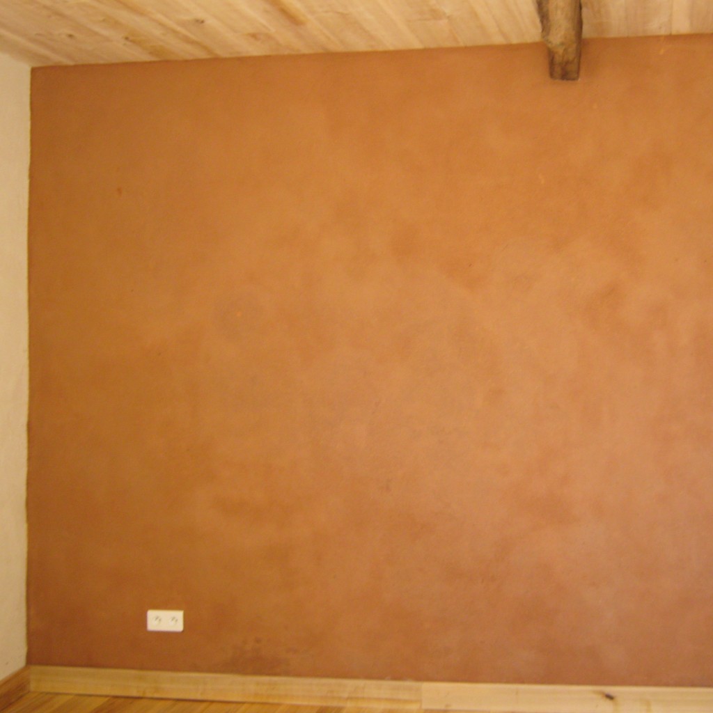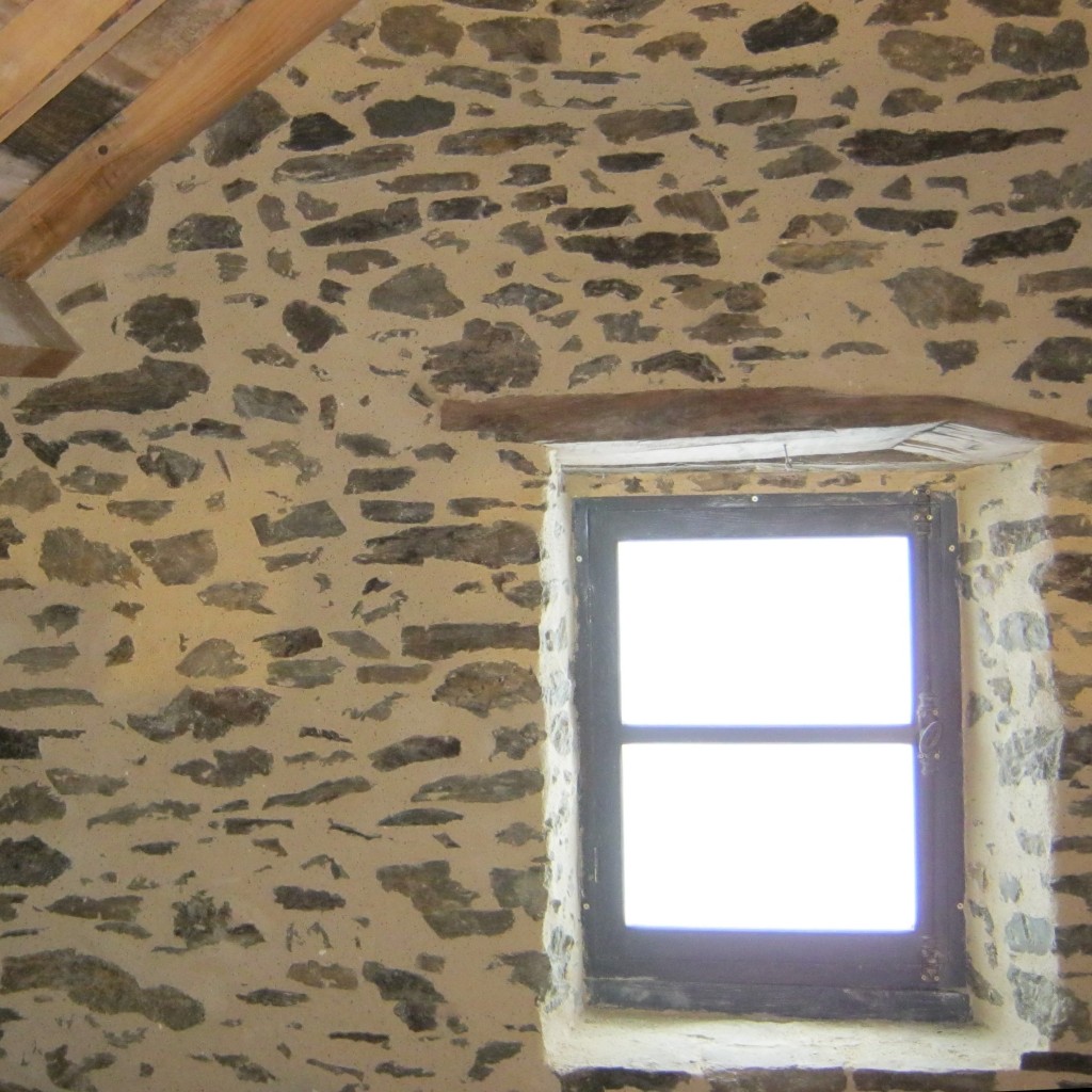 enduit terre sur poele de masse (le poêle est une réalisation d’Emile Lanselle)